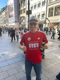 Es soll auch einmal vorkommen, dass die Männer des FCM auf Reisen sind und nicht am Platz stehen. Das ist aber noch lange kein Grund nicht adäquat gekleidet zu sein - stolz präsentiert sich der "FCM auf Tour"
